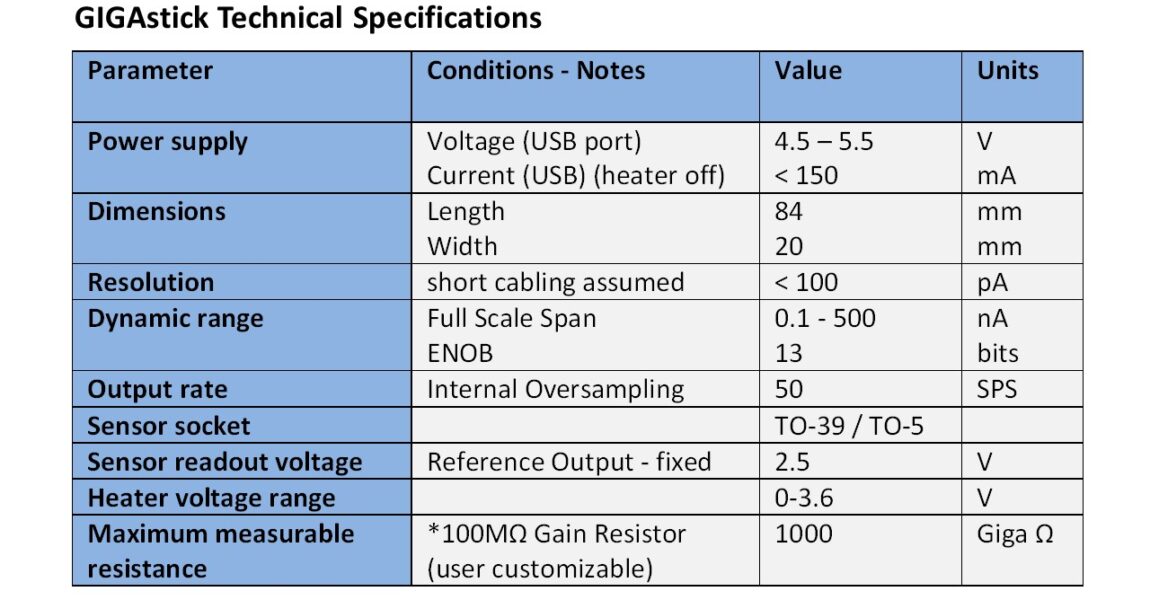 The GIGAstick is a Plug-and-play USB Interface and shares the main functionalities of the MOXstick, it is thus perfectly suited for measurement of metal oxide sensors (or any other resistive sensor), covering even a broader range of resistances, which makes it particularly useful for R&D, or especially demanding purposes.